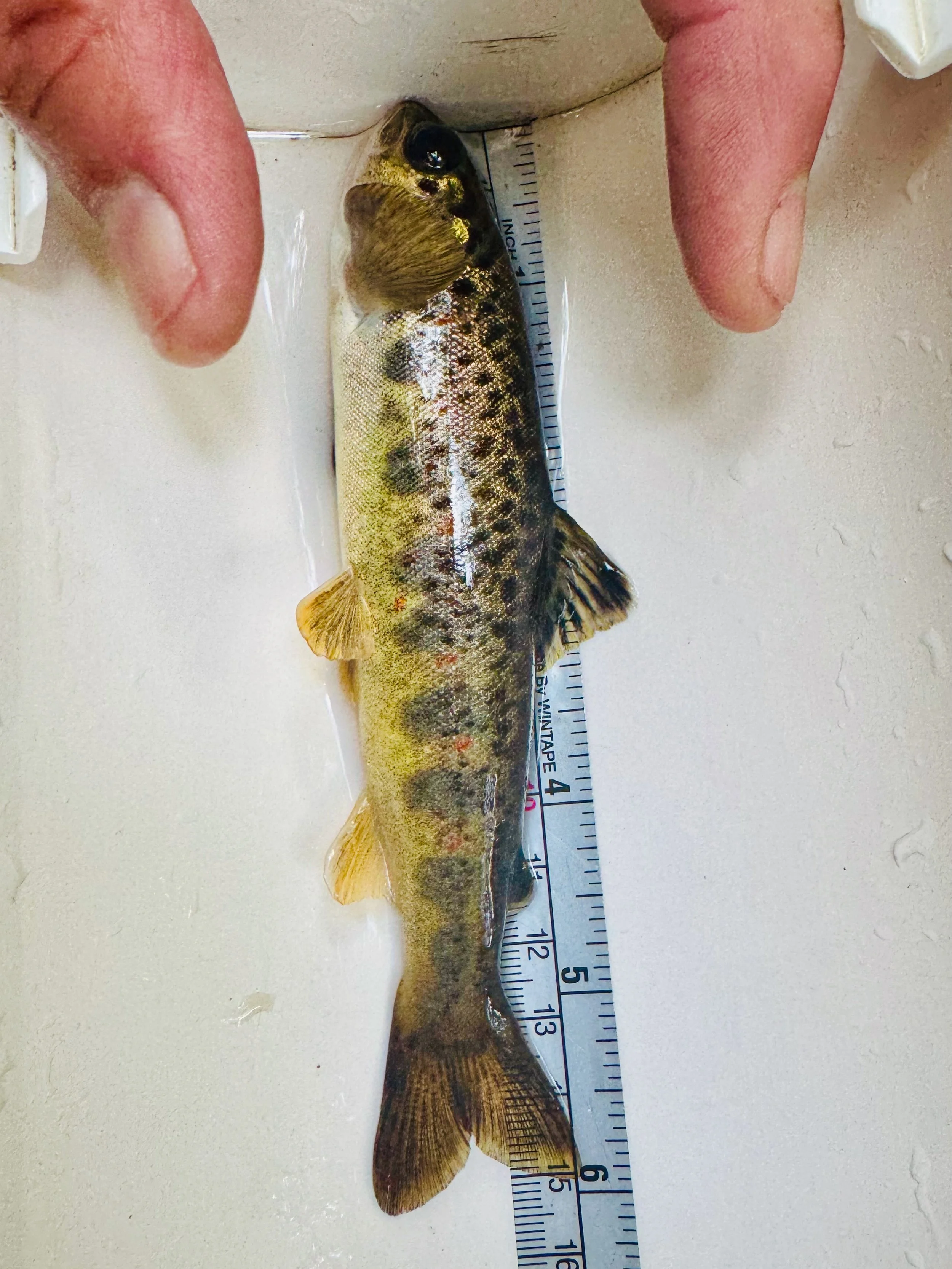 A Small Trout Fry - Measured, recorded and returned to thrive